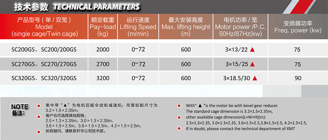 3. 可适用于需较大吨位、大尺寸吊笼等项目。